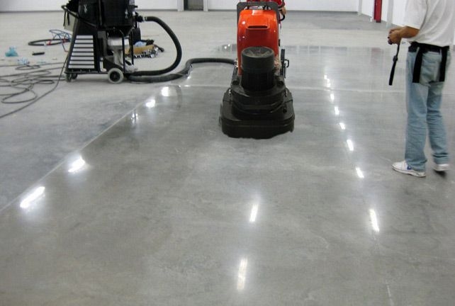對(duì)地面進(jìn)行水磨拋光,讓地面的致密度進(jìn)一步提升,并將表面鏡面效果呈現(xiàn)出來。