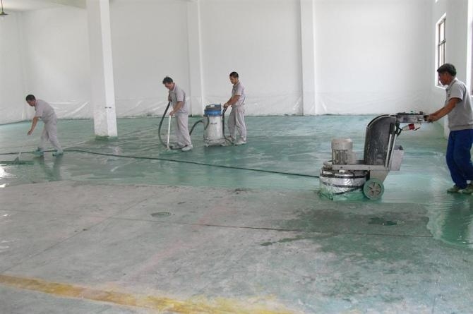 使用專業(yè)打磨機(jī)對(duì)基面進(jìn)行打磨,清理表面浮漿、灰塵,打開原有地面的空隙,讓混凝土密封固化劑可以充分滲透。